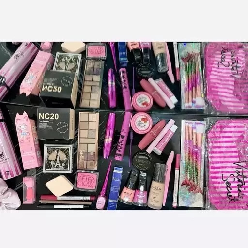 کرمپودر،پنکک،مرطوب کننده،پودر فیکس،ژل ابرو،کانتور،کانسیلر،پالت سایه،خط چشم،رژگونه،ریمل،ست براش کامل،مداد ابرو،رژلب،لاک ناخن،بادی اسپلش،کیف لوازم آرایش