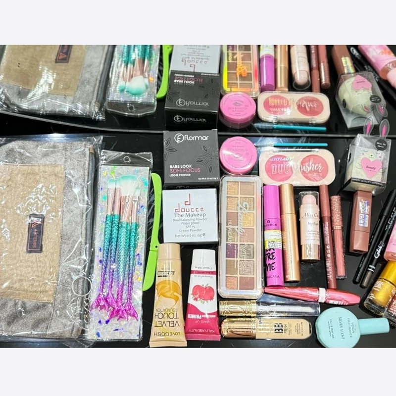 کرمپودر،پنکک،پرایمر،پودر فیکس،ژل ابرو،کانتور،کانسیلر،پالت سایه،خط چشم،رژگونه،ریمل،ست براش کامل،مداد ابرو،رژلب،لاک ناخن،بادی اسپلش،کیف لوازم آرایش
